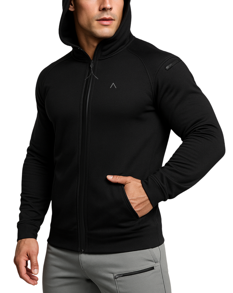 Sus cierres termosellados, aseguran una protección total contra el viento y la humedad. El bolsillo adicional en el brazo permite guardar llaves, tarjetas o audífonos con total practicidad. El fit atlético estiliza tu silueta sin limitar el rango de movimiento.