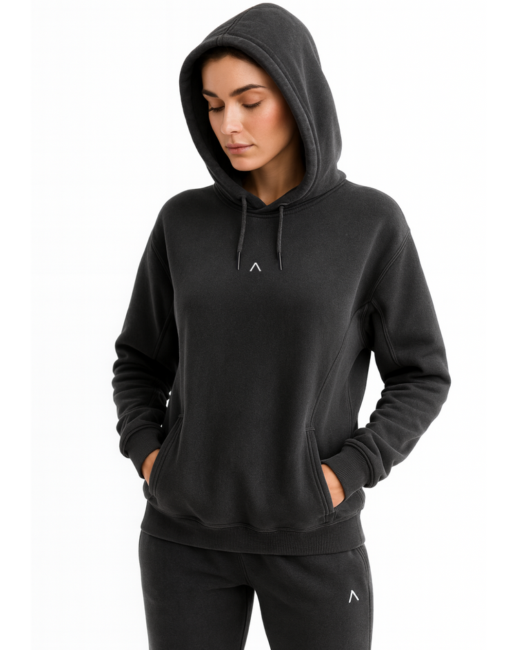 La Essential Hoodie está confeccionada en 100% algodón premium, diseñado para ofrecer suavidad excepcional, transpirabilidad y una caída natural que se adapta al movimiento.