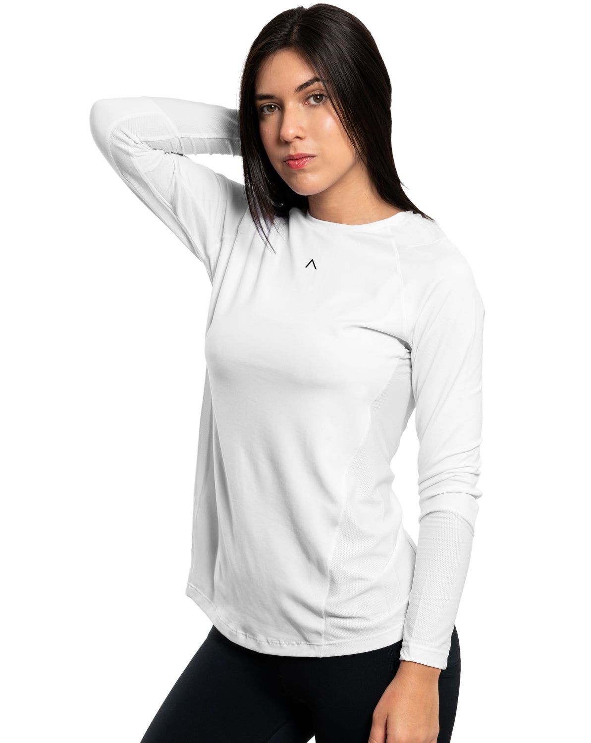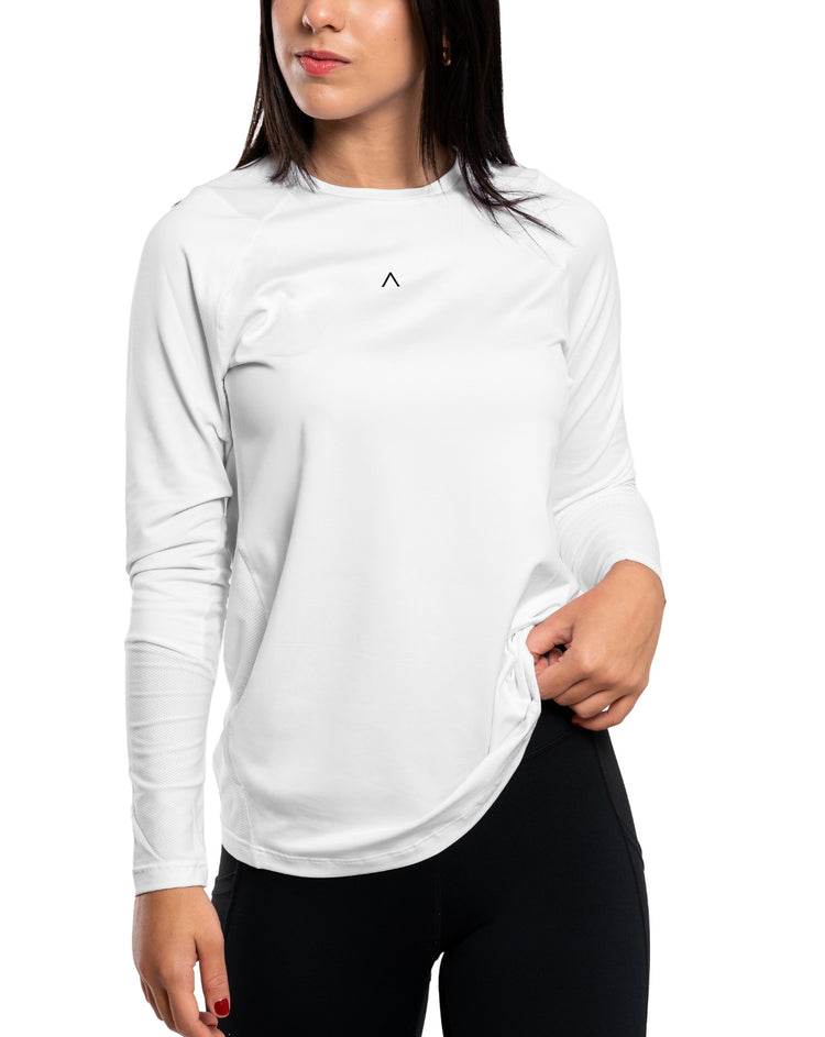 Incorpora paneles de malla estratégicamente ubicados en la espalda y brazos, que permiten una ventilación superior en las zonas de mayor sudoración. Su silueta ceñida y femenina se adapta al cuerpo sin limitar el movimiento.