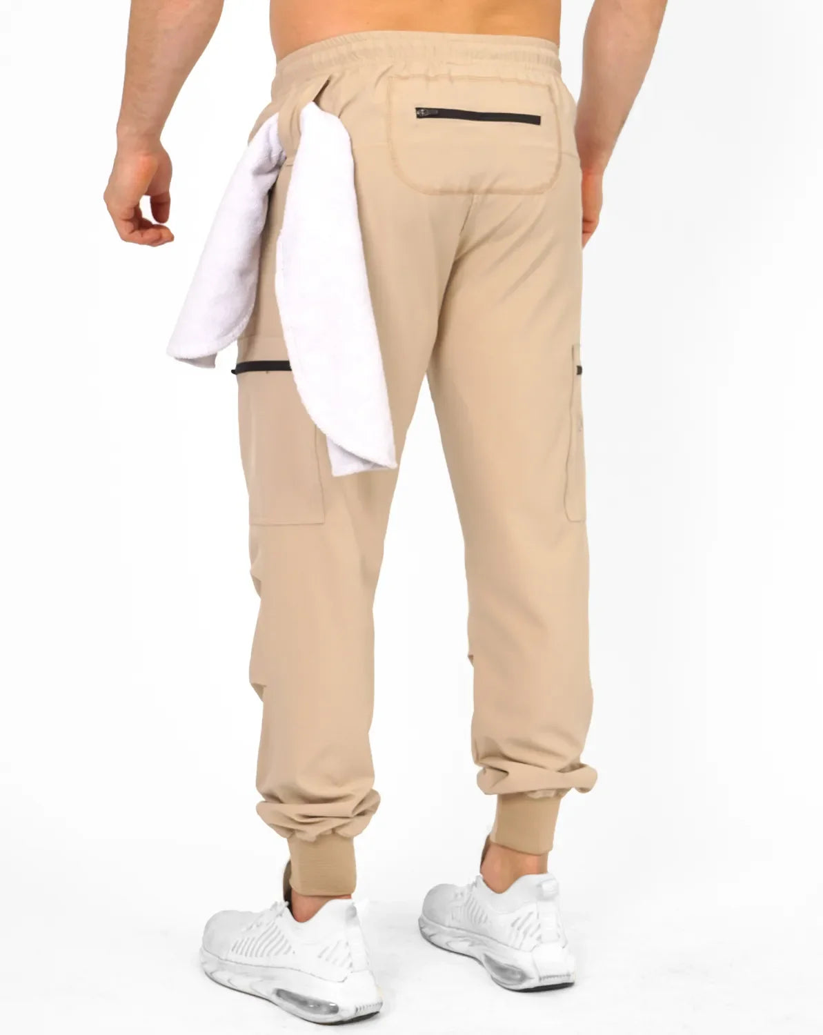 Con bolsillos cargo laterales para llevar tus esenciales y un portatoalla trasero integrado, estos joggers están hechos para entrenar con eficiencia y moverte con estilo.