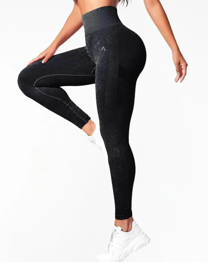 Las nuevas Wash Sculpt Leggings combinan la firmeza de un tejido técnico con el estilo único del efecto lavado. Su diseño moldeador con realce natural en glúteos define tu figura sin necesidad de costuras visibles, logrando un look atlético y estilizado en segundos.
