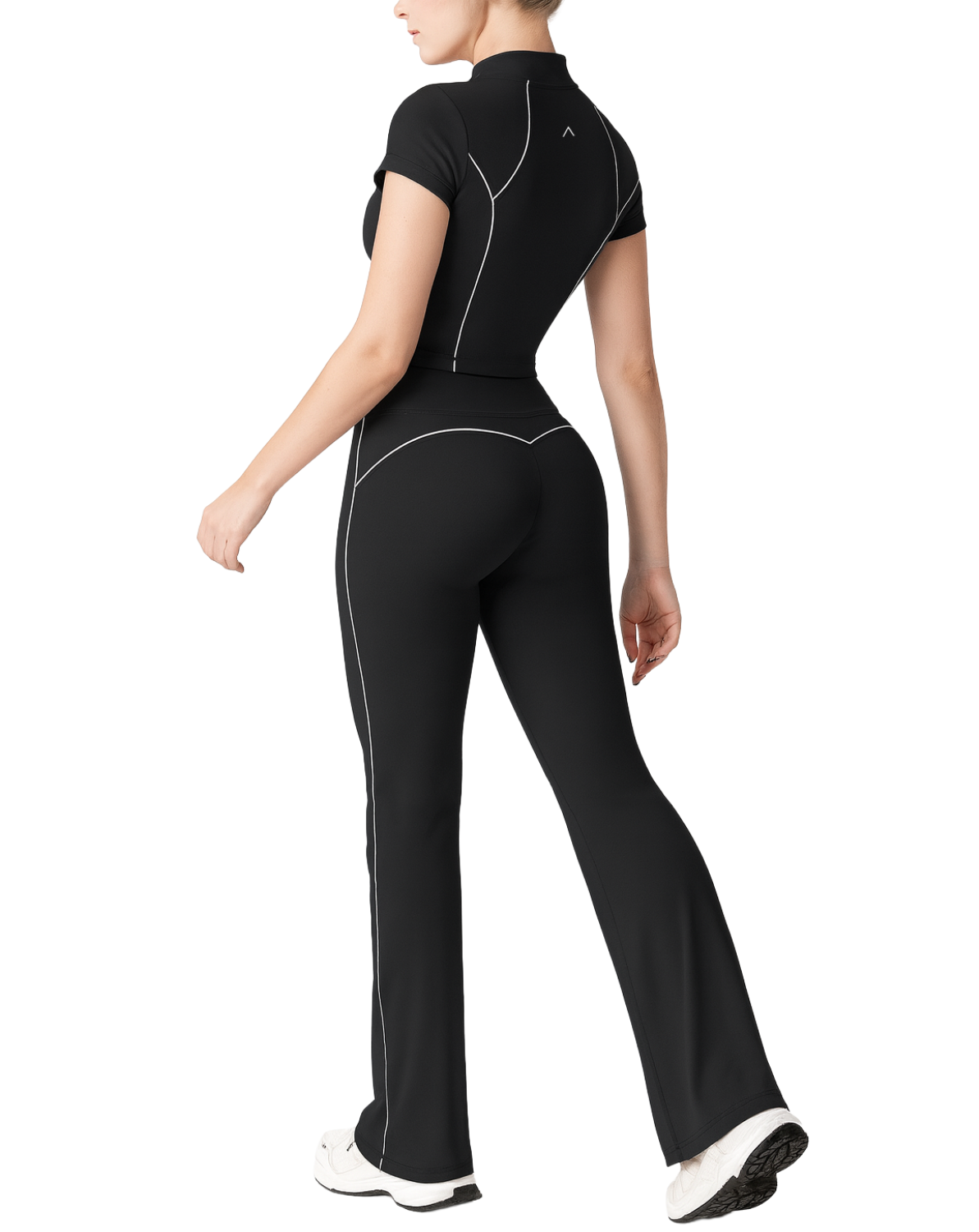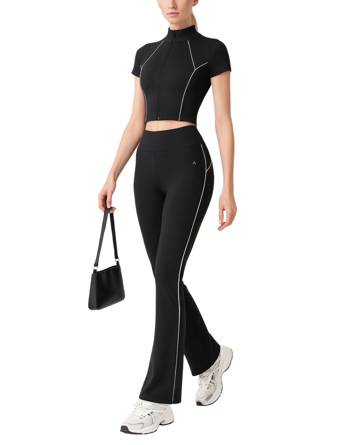 Diseñado para moverte con energía y estilo, el Align Set combina una cropped jacket de cierre frontal y pantalones flare de alto rendimiento, ambos confeccionados en tela técnica de compresión suave y de secado rápido. Sus costuras contrastadas no solo añaden un toque dinámico, sino que también realzan el diseño atlético de la prenda. Ideal para entrenamientos de alta intensidad o para llevar un look deportivo moderno en tu día a día.